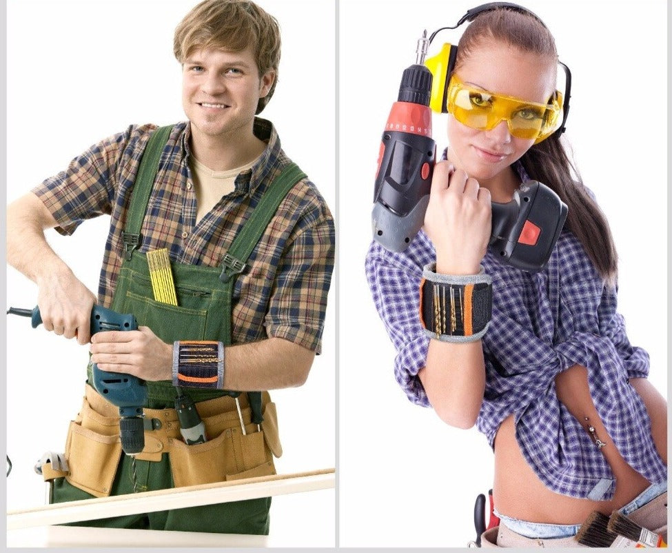 - 🎁idée cadeau homme - Equipé de 15 super aimants,bracelet homme le poignet pour tenir les vis, les clous, les boulons, les rondelles et les forets. Parfait pour la rénovation, la construction, la menuiserie, la réparation automobile, gadget insolite utile.